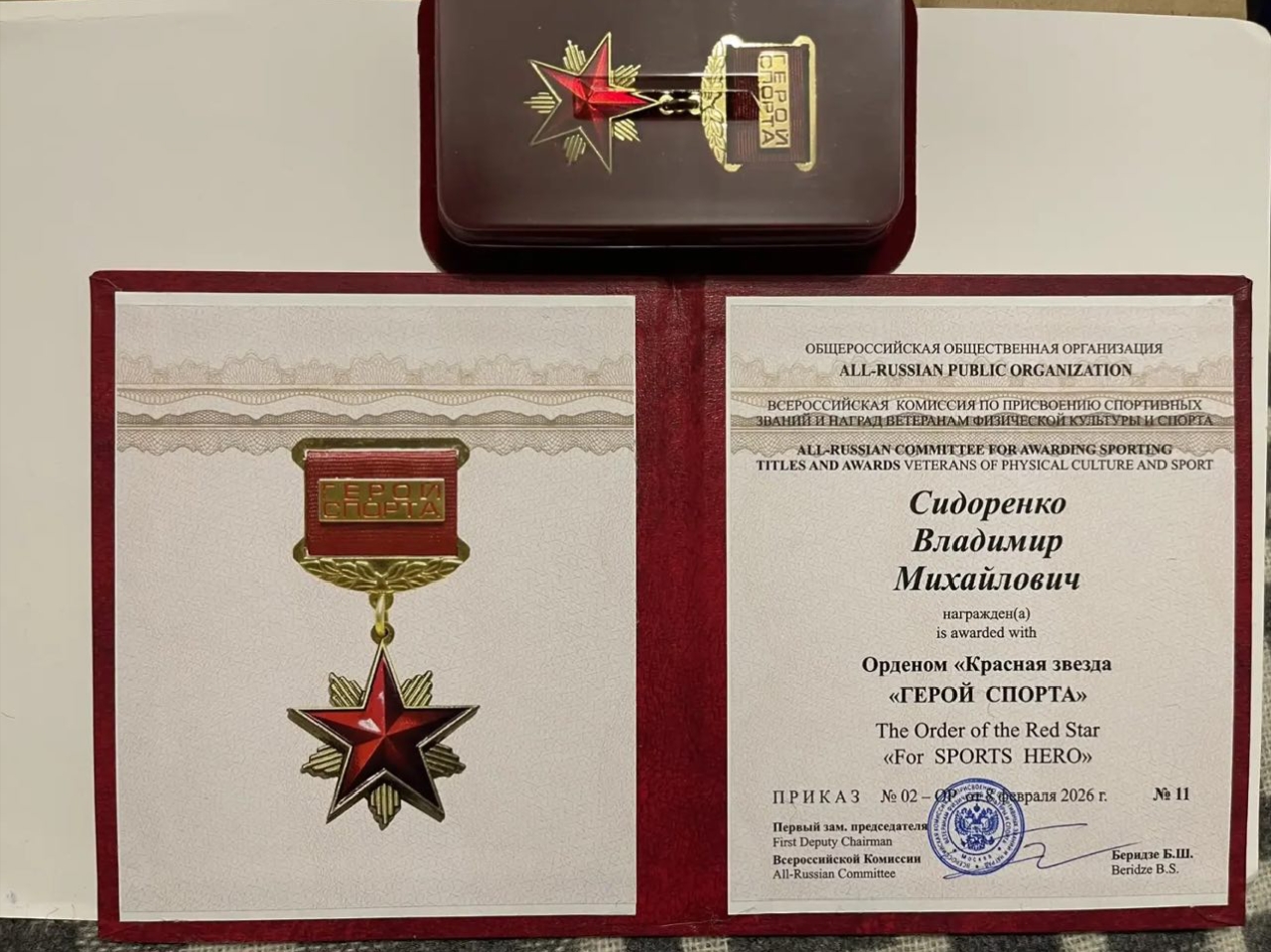 Приказ Общероссийской общественной организации «Всероссийская комиссия по присвоению спортивных званий и наград ветеранам физической культуры и спорта» о награждении ветеранов отечественного дзюдо и самбо был подписан 8 февраля этого года.